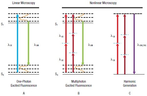 Nonlinear imaging system has single and multi-modalities, which are sensitive for probing different cellular structures.